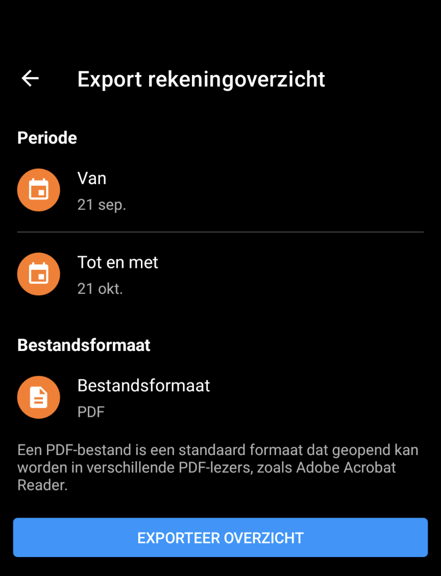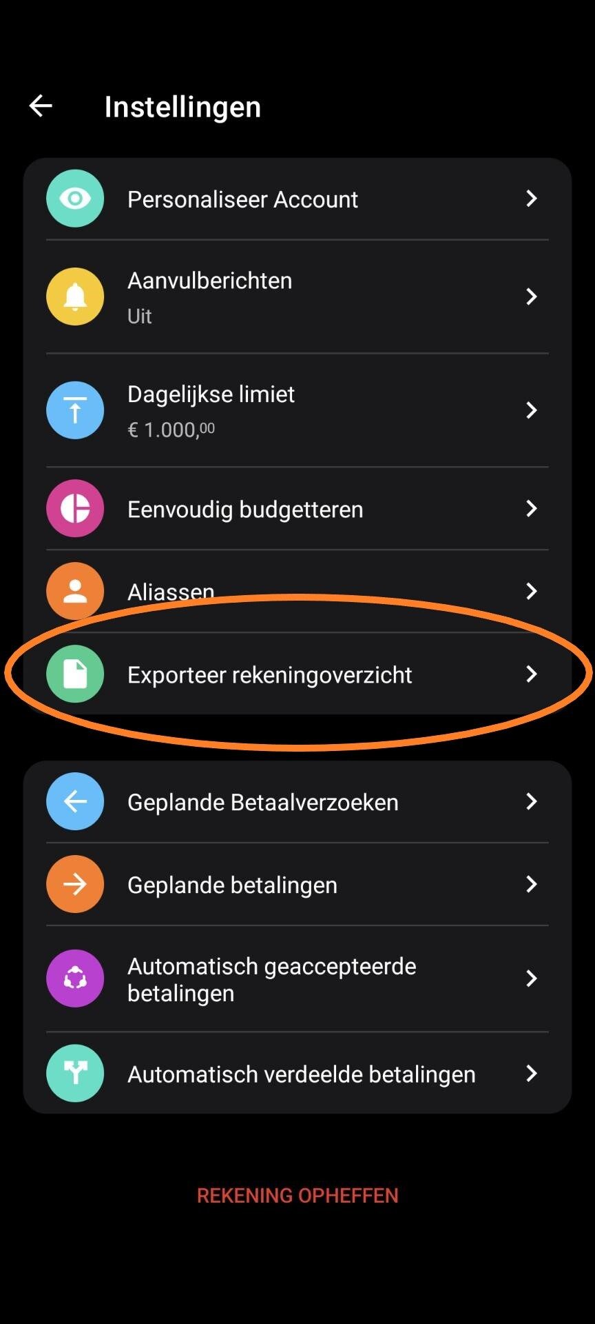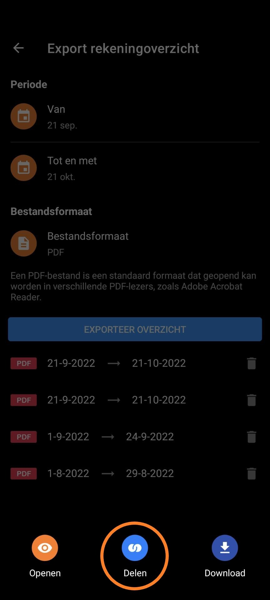 Volg onderstaande stappen om een rekeningoverzicht te exporteren en per e-mail te versturen.